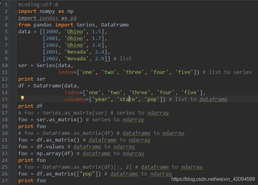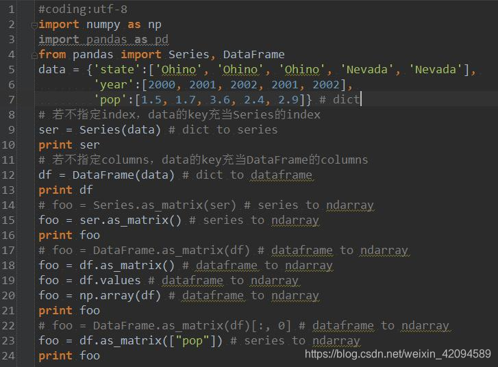 dataframe是Pandas中的数据结构,Pandas主要用于读取csv格式的文件,读取后数据文件格式为dataframe结构 - series和dataframe数据结构
