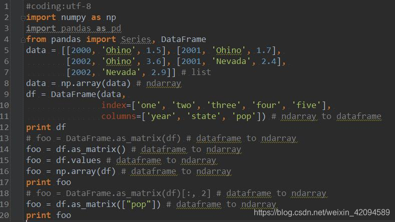 ndarray是Numpy中的数据结构,是一个多维数组,可以理解为矩阵,具有矢量运算能力,快速、节省空间 - dataframe数据结构: